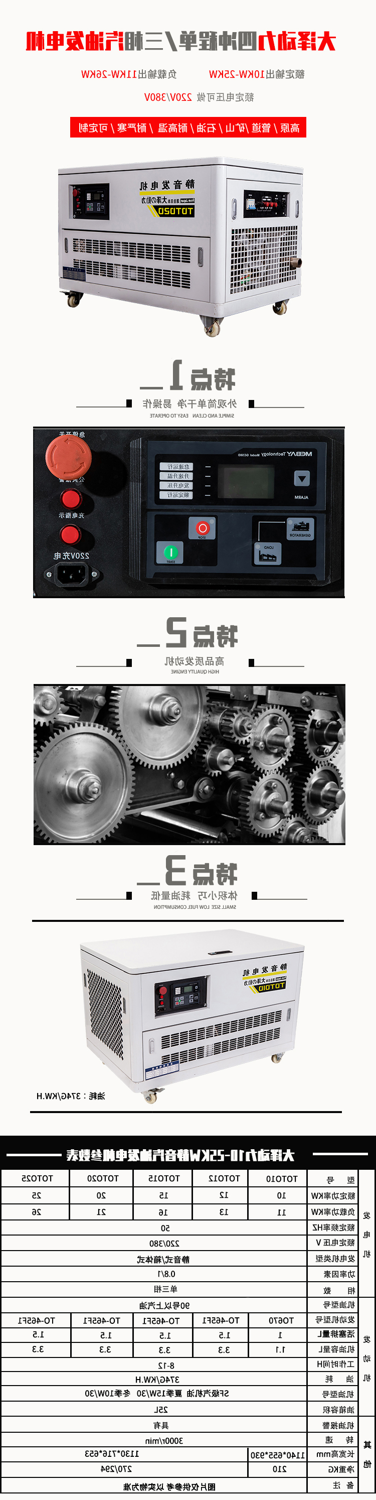 发电机类型:静音